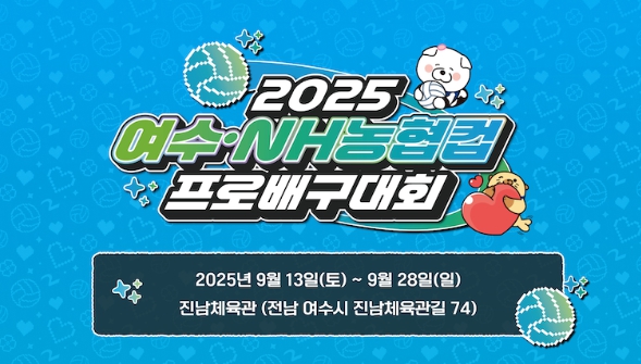 [파이낸셜경제=금윤지 기자] 여수시는 오는 9월 21부터 28일까지 진남체육관에서 열리는 ‘2025 여수·NH농협컵 프로배구대회’ 여자부 전 경기의 비지정석을 여수시민에게 무료 개방한다고 밝혔다.