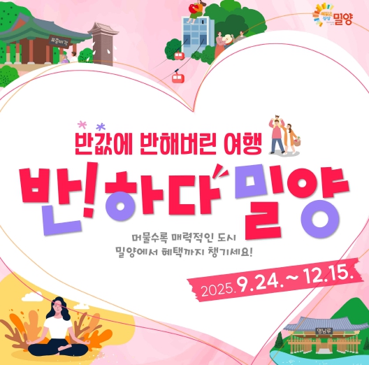 시 관계자는 “이번 반값여행 페이백 사업은 관광객이 밀양에서 머무는 시간을 늘리고 소비를 끌어내는 효과가 기대된다”라며 “많은 분이 혜택을 누리며 밀양의 매력을 경험하길 바란다”라고 밝혔다.