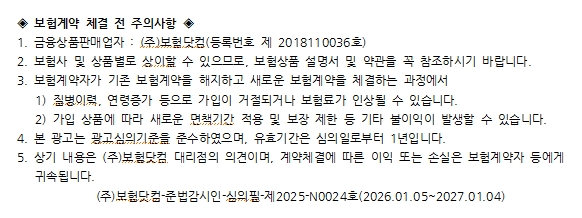 참고로 병력을 가지고 있는 사람이라면 유병자보험 상품을 고려해 볼 수 있다. 유병자보험은 간편심사보험이라 칭하는데, 유병력자에 대한 가입조건이 보다 완화된 상품인 만큼 유병자라면 검토해 보는 것이 권장된다. 단, 가입 시 고지의무 준수는 필수적이므로 추후에 불이익이 발생하지 않도록 주의를 기울여야 한다.
