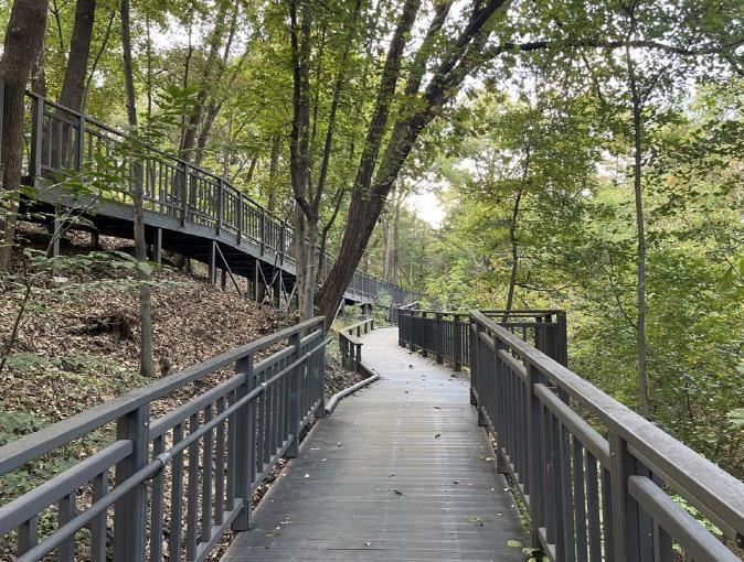 데크길을 지나 자연 산책로를 따라가면 과학도서관까지 이어져, 가을 산책에 독서의 여유까지 더할 수 있다.