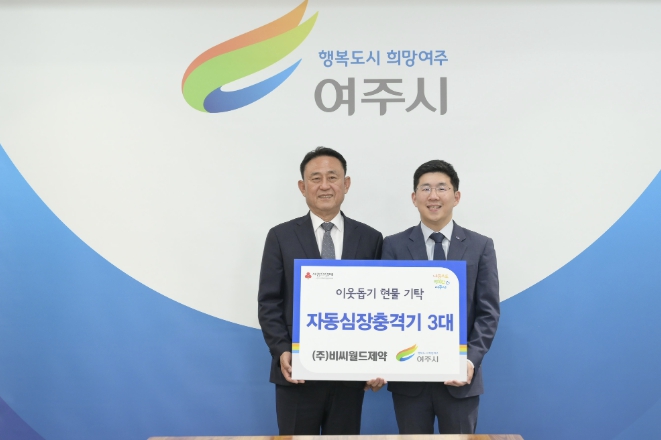 | ▲ ㈜비씨월드제약, 여주시에 자동심장충격기(AED) 3대 기탁 |