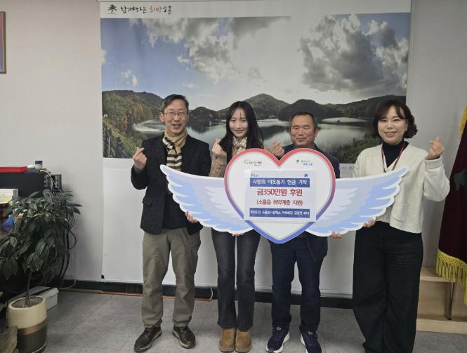 유재현 소흘읍장은 “어려운 이웃을 위해 따뜻한 나눔을 실천해 주신 솔그린농장에 깊이 감사드린다”며 “기탁해 주신 소중한 성금은 꼭 필요한 이웃들에게 정성껏 전달하겠다”고 전했다.