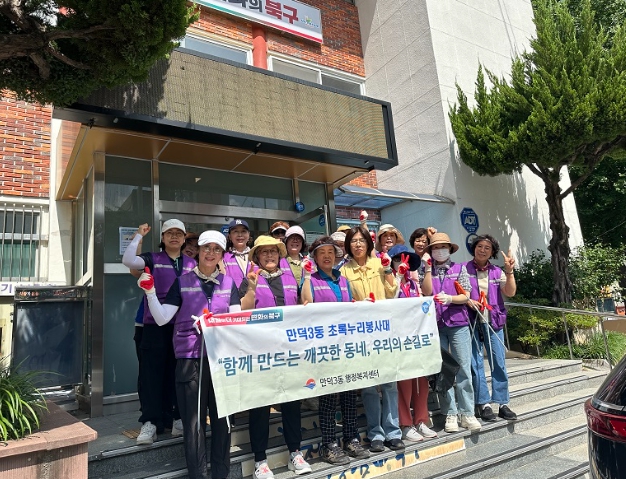 ‘초록누리봉사대’는 만덕3동의 통장, 자율방재단, 지역주민등 다양한 단체원으로 구성된 봉사단체로, 매월 청소 봉사 활동을 통해 거리 환경정비를 꾸준히 실시하고 있다.
