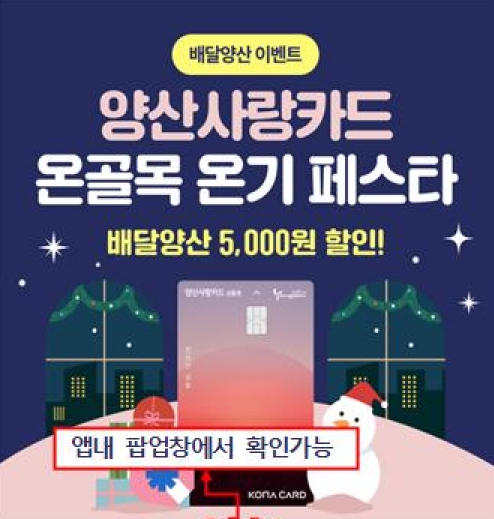 이 행사는 시민들의 연말 소비를 양산사랑카드 사용으로 유도하여 소상공인 매출 증대에 실질적인 도움을 줄 것으로 기대된다. 먼저, 오는 12월 20일(토)부터 25일(목)까지 6일간 양산사랑카드 자체 배달 앱인 ‘배달양산’ 이용자를 대상으로 온기쿠폰을 지급한다.