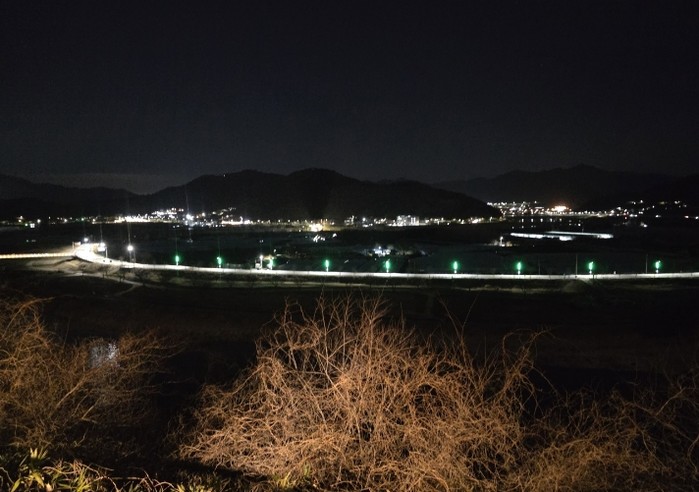 | ▲ 달팽이전망대 잔도길에서 바라본 안심가로등이 설치된 암새들 야경 |