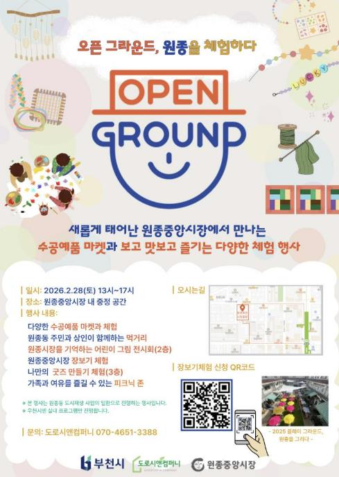 [파이낸셜경제=김기보 기자] 부천시는 2월 28일 오정구 원종동에 소재한 원종중앙시장(부천시 오정구 성오로124번길 47)에서 변화된 시장 공간을 시민이 직접 체험하는 ‘오픈 그라운드, 원종을 체험하다’ 행사를 연다.