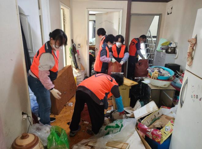 이들은 주거지 내부 정리, 청소는 물론, 오염된 가구와 집기류를 집중적으로 배출하는 작업을 진행했으며, 약 5톤가량의 생활 쓰레기를 수거했다.
