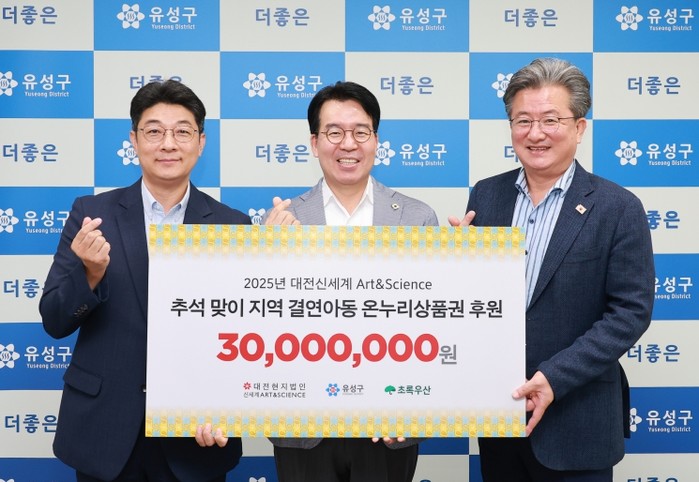 [파이낸셜경제=김영란 기자] 대전 유성구는 24일 대전신세계 Art&Science(대표이사 윤석희, 이하 대전신세계)가 온누리상품권 3,000만 원을 기탁했다고 밝혔다.