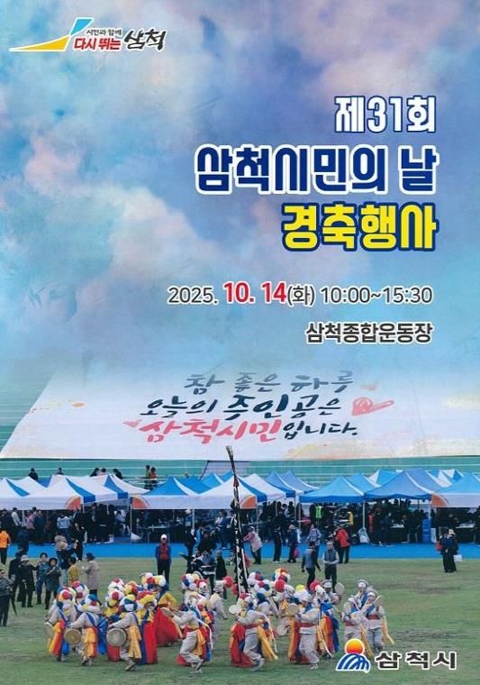 [파이낸셜경제=조성환 기자] 삼척시민의 단결과 화합, 애향심과 자긍심을 고취하기 위한 제31회 삼척시민의 날 기념 경축 행사가 오는 10월 14일 오전 10시 삼척종합운동장에서 열린다.