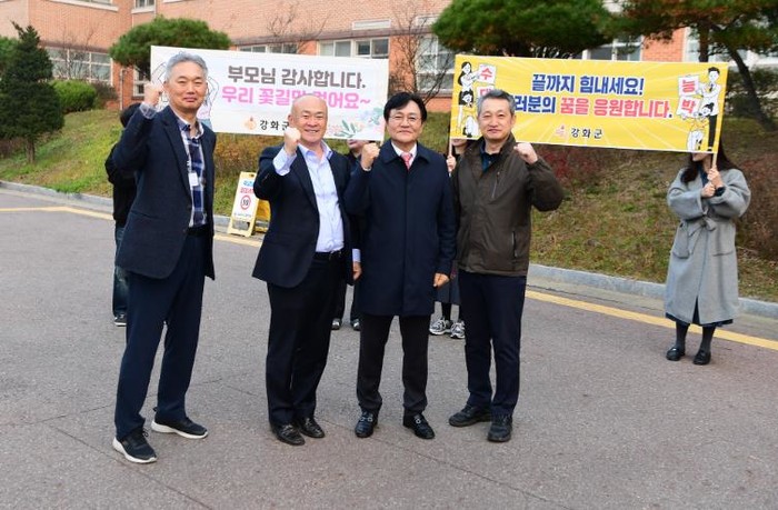 박 군수는 이른 아침부터 강화고·강화여고 관내 수능장 두 곳을 돌며 ‘여러분의 노력은 오늘 빛날 것입니다’라는 격려 피켓을 들고, 수험생들에게 격려를, 학부모들에게는 감사의 마음을 전달했다.