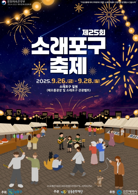 [파이낸셜경제=김기보 기자] 인천시 남동구와 남동문화재단은 오는 9월 26~28일까지 사흘간 열리는 ‘제25회 소래포구 축제’의 먹거리 정보를 사전에 투명하게 공개한다고 22일 밝혔다.