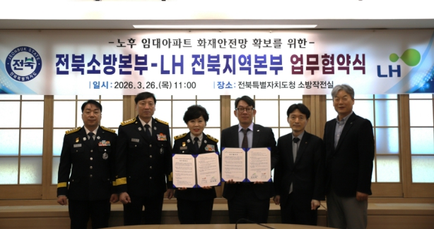 이오숙 전북특별자치도소방본부장은 “노후 임대아파트는 화재 발생 시 초기 대응과 대피가 쉽지 않아 화재안전 기반 확충이 무엇보다 중요하다”며 “이번 협약을 계기로 LH 전북지역본부와 긴밀히 협력해 화재취약계층이 보다 안전한 주거환경에서 생활할 수 있도록 화재예방과 안전망 구축에 최선을 다하겠다”고 말했다.