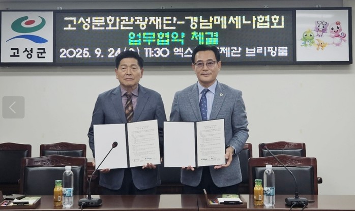 [파이낸셜경제=김예빈 기자] 고성문화관광재단은 경남메세나협회(회장 김태한 BNK경남은행장)와 지역의 문화예술 활성화 및 군민의 문화향유 기회 확대를 위해 지난 9월 24일 업무협약을 체결했다고 밝혔다.