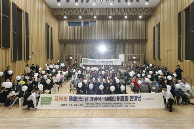 [파이낸셜경제=김영란 기자] 가평군은 20일 가평군장애인복지관 주관으로 ‘제46회 장애인의 날 기념식 및 화합 행사’를 개최했다. 음악역1939에서 열린 이번 행사에는 장애인과 시설·단체 관계자, 지역 주민 등 400여 명이 참석해 의미 있는 소통의 시간을 가졌다.