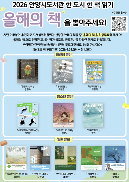 [파이낸셜경제=김기보 기자] 안양시는 2026년 한 도시 한 책 읽기 ‘올해의 책’ 선정을 위한 시민 선호도 조사를 오는 5월 1일까지 온·오프라인으로 진행한다고 24일 밝혔다.