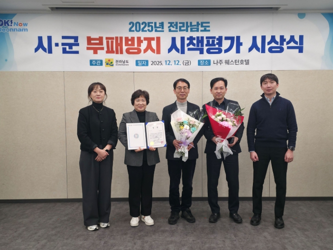 [파이낸셜경제=김예빈 기자] 목포시는 지난 12일 전라남도가 주최한 ‘2025년 시·군 부패방지 시책평가’에서 우수상을 수상했다. 지난해 장려상에 이어 한 단계 상승한 성과로, 2년 연속 우수기관으로 선정됐다.