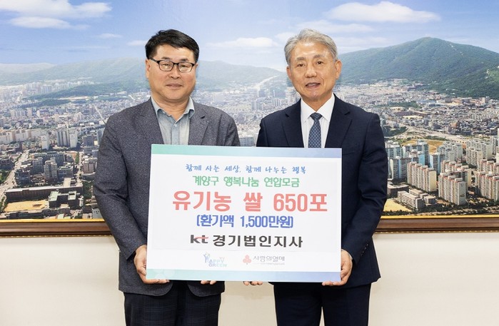 [파이낸셜경제=김기보 기자] 인천광역시 계양구는 지난 22일 KT부천지사에서 지역 내 어려운 이웃을 돕기 위해 유기농 쌀 650포(4kg)를 기탁했다고 밝혔다.