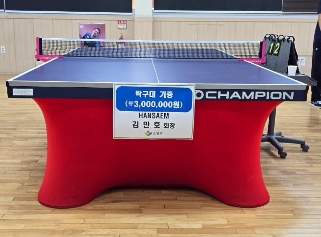 [파이낸셜경제=김예빈 기자] 순창군은 순창군 금과면 출신인 HANSAEM 김만호 회장이 31일 순창시니어클럽에 300만 원 상당의 탁구대 2대를 기증했다고 밝혔다.