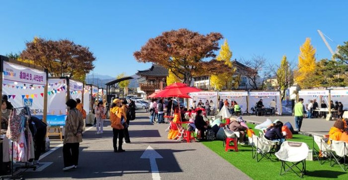 | ▲ 경주시 평생학습가족관 야외행사장에서 다양한 체험부스와 홍보부스가 운영되고 있다 |