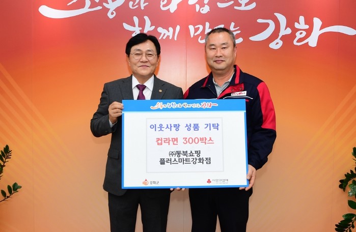 [파이낸셜경제=김기보 기자] 강화군은 ㈜동북쇼핑 플러스마트(대표 백창헌)가 27일 사회복지공동모금회를 통해 컵라면 300박스를 강화군에 기탁했다고 밝혔다.