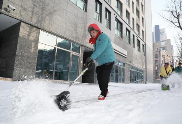 [파이낸셜경제=김영란 기자] 2월 1일 밤 대설이 내린 가운데, 박강수 마포구청장은 2월 2일 오전 8시 공덕동 일대(만리재로 125)를 찾아 제설작업 현장을 살피고, 새롭게 도입한 전동식 제설장비를 활용해 직접 제설작업을 실시했다.