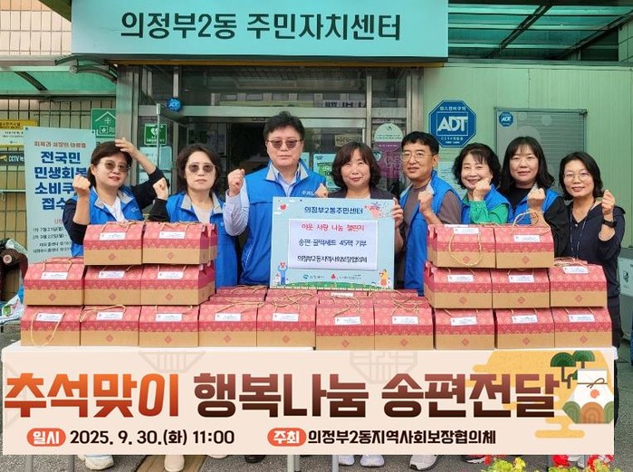 [파이낸셜경제=김기보 기자] 의정부시 의정부2동주민센터는 9월 30일 관내 저소득 취약가구 45세대를 대상으로 ‘추석맞이 행복나눔 송편전달’ 행사를 진행했다.