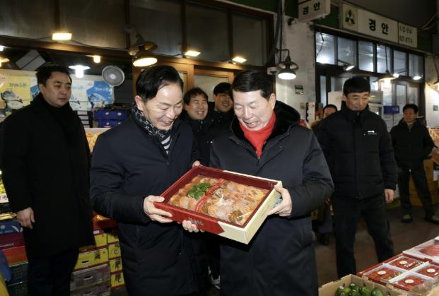 | ▲ 백경현 구리시장, 설맞이“구리농수산물도매시장” 장보기 행사 |