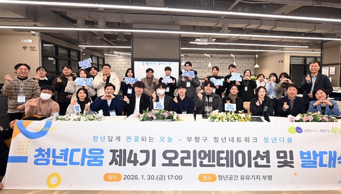 구 관계자는 “청년과 함께 성장하는 부평을 만들어 나가기 위해 제4기 ‘청년다움’의 활약을 기대한다”며 “앞으로도 청년의 활력으로 부평의 미래를 열어갈 수 있도록 지속적인 소통과 지원을 이어 가겠다”고 말했다.