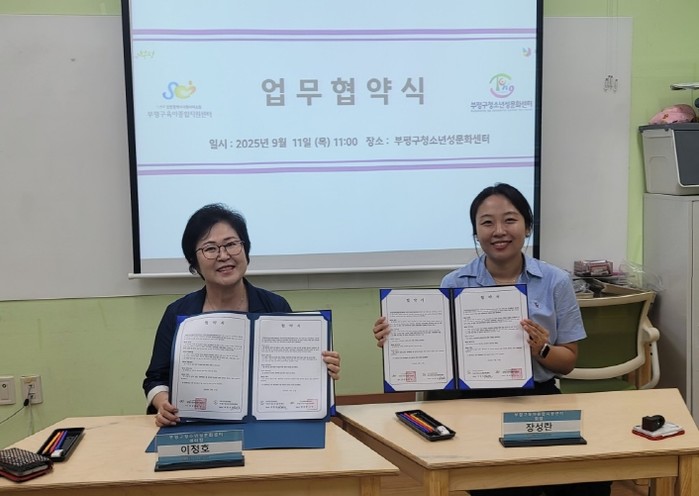 [파이낸셜경제=김기보 기자] 부평구 청소년성문화센터는 지난 11일 부평구육아종합지원센터와 업무 협약을 체결했다.