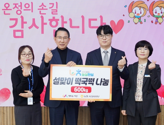 윤희철 NH농협은행 서산시지부장은 “설 명절 소외된 이웃들에게 따뜻한 마음을 전하고자 떡국떡을 전달해 왔다”라며 “앞으로도 지역사회에 보탬이 되는 나눔 활동에 앞장서겠다”라고 말했다.