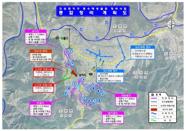 이번 사업은 집중호우 때마다 반복적으로 침수피해가 발생한 진보면 진안리와 이촌리 일원을 대상으로 한다. 청송군은 총 462억 원을 투입해 소하천 정비, 내수재해 예방시설 확충, 저수지 정비, 소규모 위험시설 개선 등을 종합적으로 추진할 계획이다.