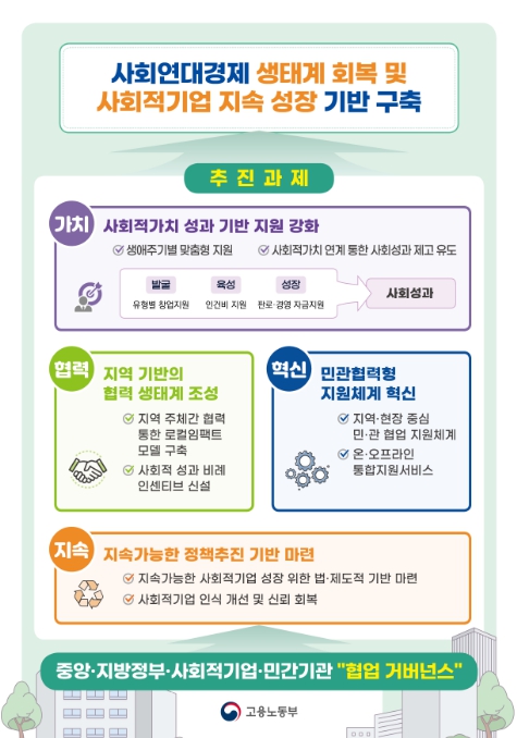[파이낸셜경제=김영란 기자] 고용노동부는 가치, 협력, 혁신, 지속가능성을 기본전략으로 제시하고 사회적기업 생태계 회복과 지속가능한 성장 기반 구축에 본격적으로 나선다.