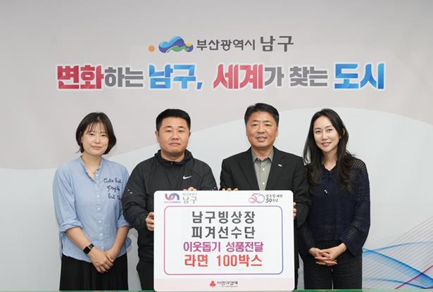 [파이낸셜경제=박영진 기자] 남구 빙상장을 이용하는 어린이 피겨선수단이 지난 15일 부산광역시 남구(구청장 오은택)에 라면 100박스를 기부했다.