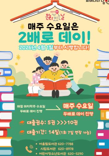 | ▲ 남원시공공도서관 ‘문화가 있는 날’ 확대 운영-매주 수요일, 도서관의 즐거움이 두 배! |