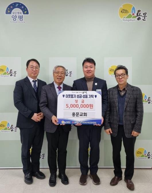 | ▲ 나눔으로 전하는 희망, 양평군 용문교회 이웃돕기 성금 500만 원 기탁 |