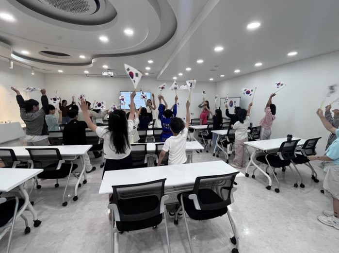 유아 대상 ‘나라 사랑 태극기’는 태극 문양과 건곤감리의 의미를 배우고, 옛 태극기와 현대의 태극기를 비교하며 태극기 손수건 만들기 체험을 진행하는 프로그램이다.
