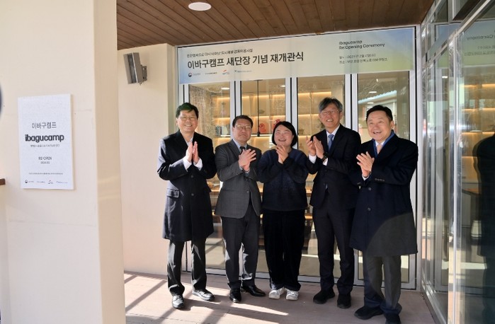 이번 오픈식에는 국토교통부, 카카오, 주택도시보증공사 관계자들이 참석해 사업 추진 경과를 공유하고 ‘이바구캠프가 다시 열리고 새로운 공간의 시작’이라는 도어 사인 행어 전달과 ‘지역과 사람을 잇는 지속가능한 공간’이라는 내용을 담은 현판 제막을 통해 이바구캠프의 새출발을 함께 기념했다.