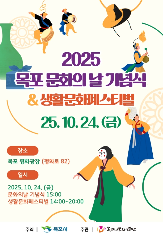 [파이낸셜경제=김예빈 기자] 목포문화재단은 오는 10월 24일 오후 2시 평화광장에서 ‘2025 목포 문화의 날 기념식 및 생활문화페스티벌’을 개최한다.