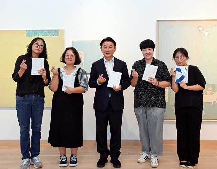 | ▲ 김동근 시장이 9월 29일 백영수미술관에서 ‘공간과 장소’를 함께 읽는 독서모임을 열고, 참가 시민들과 기념사진을 찍고 있다. |