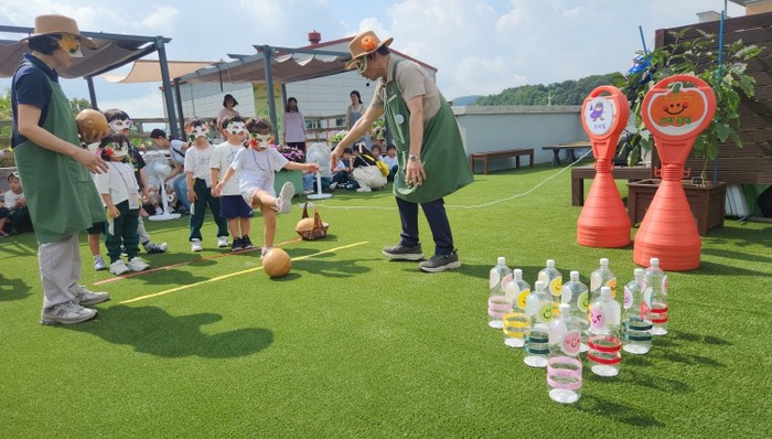 | ▲ 옥상 텃밭정원 프로그램 (호박볼링놀이) |