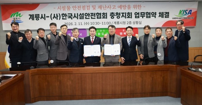 [파이낸셜경제=김영란 기자] 충남 계룡시는 11일 (사)한국시설안전협회 충청지회와 ‘계룡시 시설물 안전점검 및 재난사고 예방을 위한 업무협약’을 체결했다고 밝혔다.