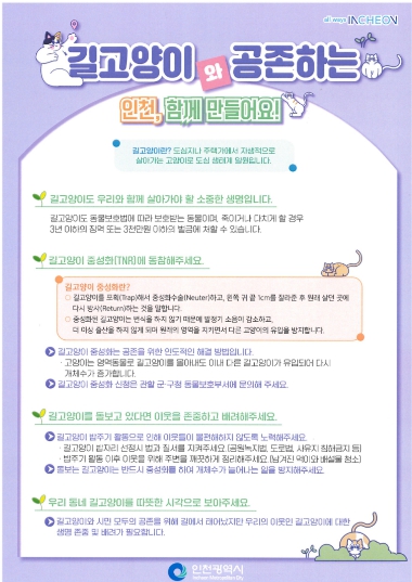 구 관계자는 “길고양이 중성화 지원사업을 통해 주민 생활 불편을 줄이고 인도적인 방식으로 길고양이 개체 수를 조절해 동물복지를 실현할 것”이라며 “앞으로도 사람과 동물이 함께 공존하는 행복한 계양구를 만들기 위해 노력하겠다.”라고 말했다.