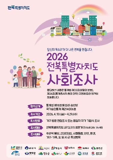 [파이낸셜경제=김예빈 기자] 순창군은 오는 10일부터 29일까지 14일간 2026년 순창군 사회조사를 실시한다.