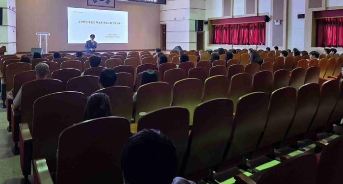 이번 교육은 청렴한 공직문화 조성을 위해 진행됐으며, 국민권익위원회 박동규 강사가 행동강령, 청탁금지법, 이해충돌방지법, 갑질 금지 규정 등 주요 내용을 중심으로 교육현장에 필요한 청렴 사례를 분석하며 강의를 진행했다.