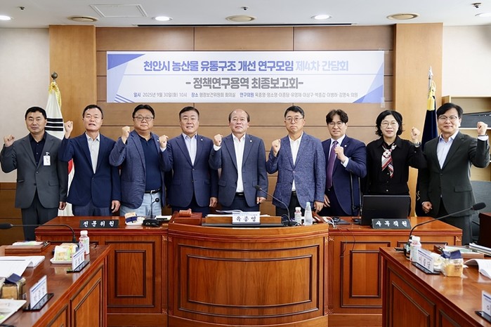 [파이낸셜경제=김영란 기자] 천안시의회 농산물 유통구조 개선 연구모임이 9월 30일 오전 10시 의회 행정보건위원회 회의실에서 7개월간의 연구 성과를 담은 최종보고회를 개최했다.