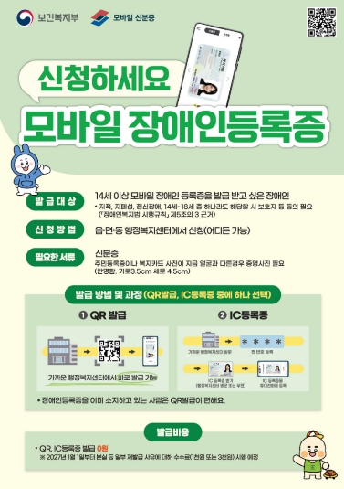 [파이낸셜경제=김예빈 기자] 남원시는 오는 2026년 1월 22일부터 기존 실물 장애인등록증과 함께 모바일 장애인등록증 발급 서비스가 전면 시행된다고 밝혔다.