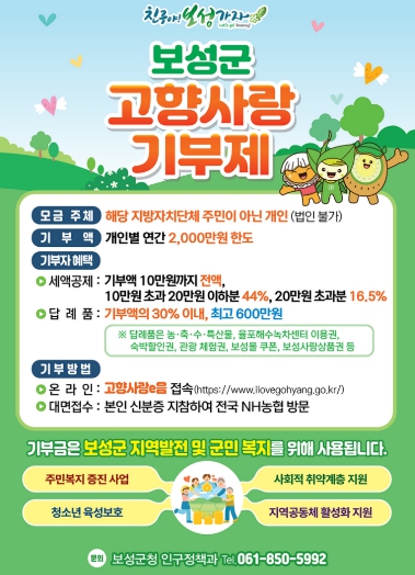 | ▲ 보성군-담양군, 고향사랑 교차 기부로 싹튼 상생의 정_고향사랑기부제 포스터 |