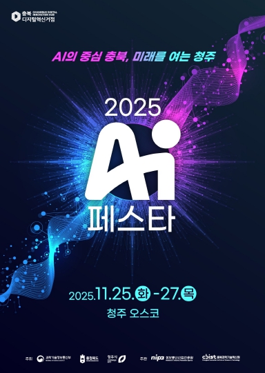 [파이낸셜경제=김기보 기자] 충북도는 청주시, 충북과학기술원과 함께 오는 11월 25일부터 27일까지 청주오스코에서 'AI 페스타 2025'를 개최한다. ‘AI 중심 충북, 미래를 여는 청주!’를 슬로건으로 열리는 이번 행사는 충청권 최대 규모의 디지털 융합 축제로, MS코리아, KT, 에코프로 등 국내외 주요 기업과 도내 혁신기업 등 50여 개 기업·기관이 참여하고, 3,000여 명의 참관객이 함께할 예정이다.