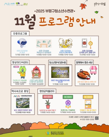 | ▲ 부평구청소년수련관, 11월 청소년 프로그램 운영 |