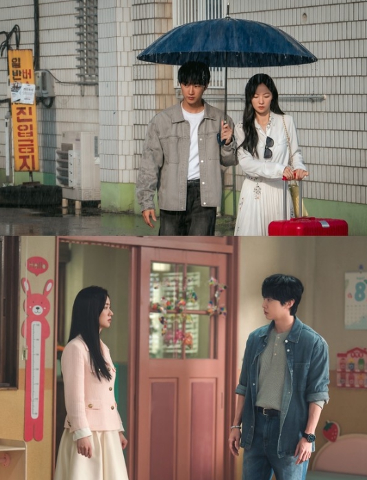 쏟아지는 빗줄기 아래 강렬한 첫 만남 이후 유치원에서 다시 만난 두 사람의 얼굴에는 긴장과 의구심, 그리고 떨림이 고루 서려 있어 이들의 관계가 어떻게 변화할지 이목이 집중되고 있다.